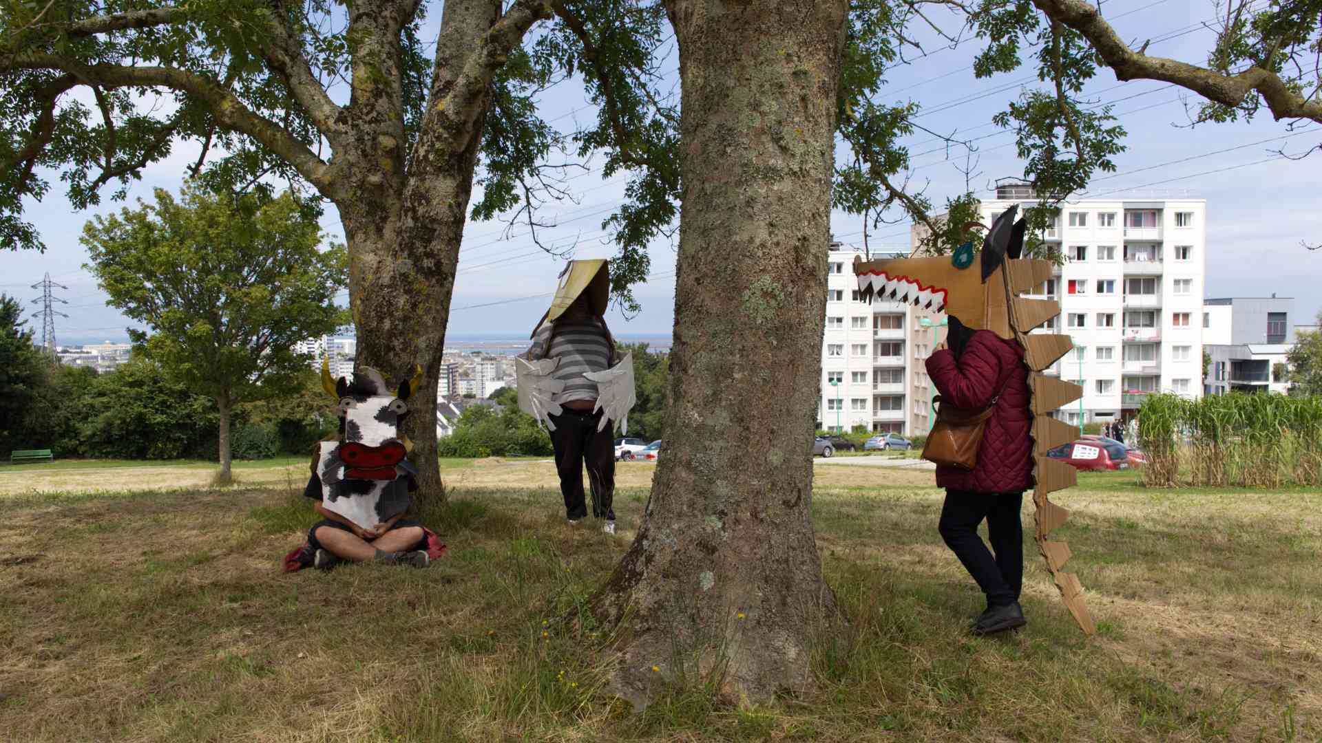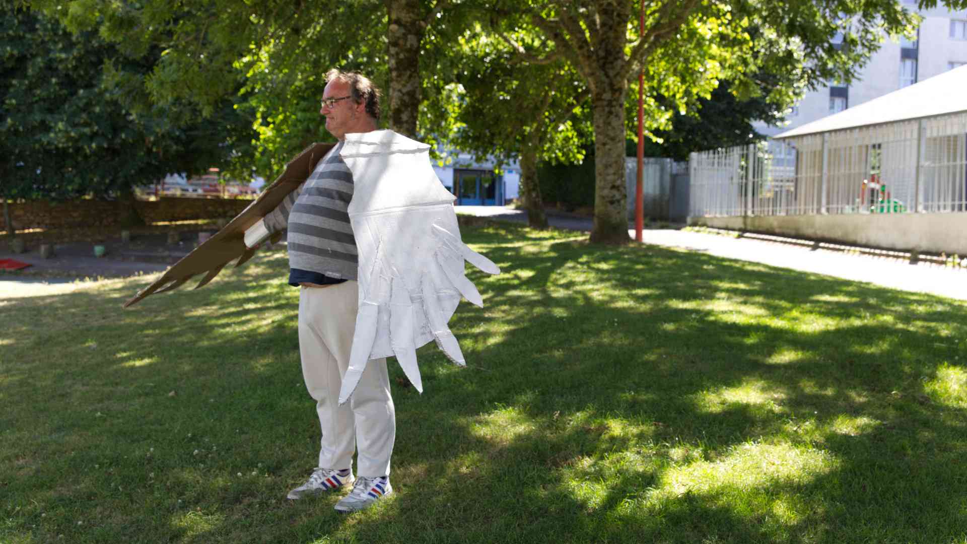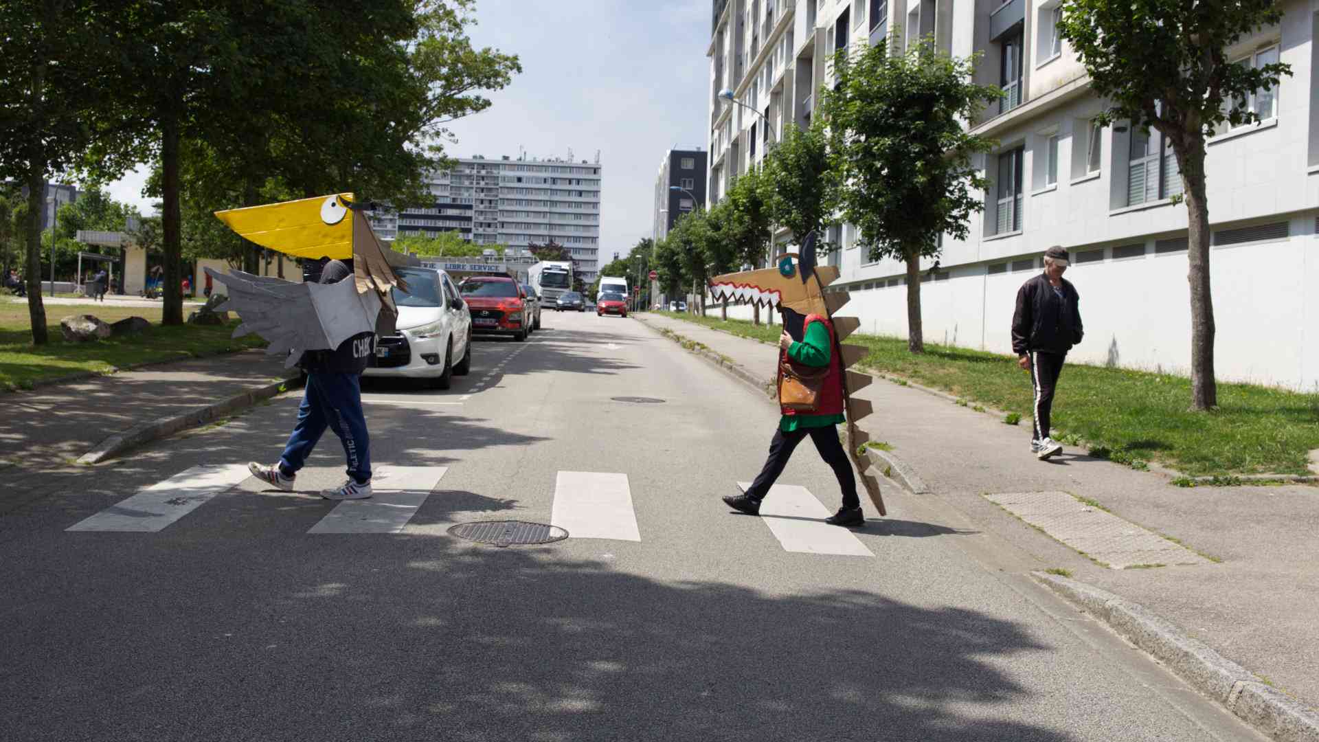 Uchronie autour d’une question simple : « Si vous étiez un dieu, quel serait-il ? » Un oiseau au bec jaune, une vache au nez rouge, un renard dinosaure, un nuage, une montgolfière, des bottes de sept lieues et Mr Patate. Des formes peintes en carton déambules dans les rues de la cité. Aux passants qu’ils rencontrent, la même question est posée et les réponses aussi spontanées que drôles, dérivent de la représentation divine à la critique sociale. Une étoile filante chemine à travers les rues annonciatrice de quelques épiphanies et toujours le même constat : C’est pas facile d’être un dieu. Ce film a été réalisé lors du programme de résidence : « Soudain l’été prochain », piloté par RN13BIS dans le cadre de « l’été culturel » de la DRAC Normandie à la Maison Olympe de Gouges à Cherbourg-en-Cotentin en Juillet 2025.