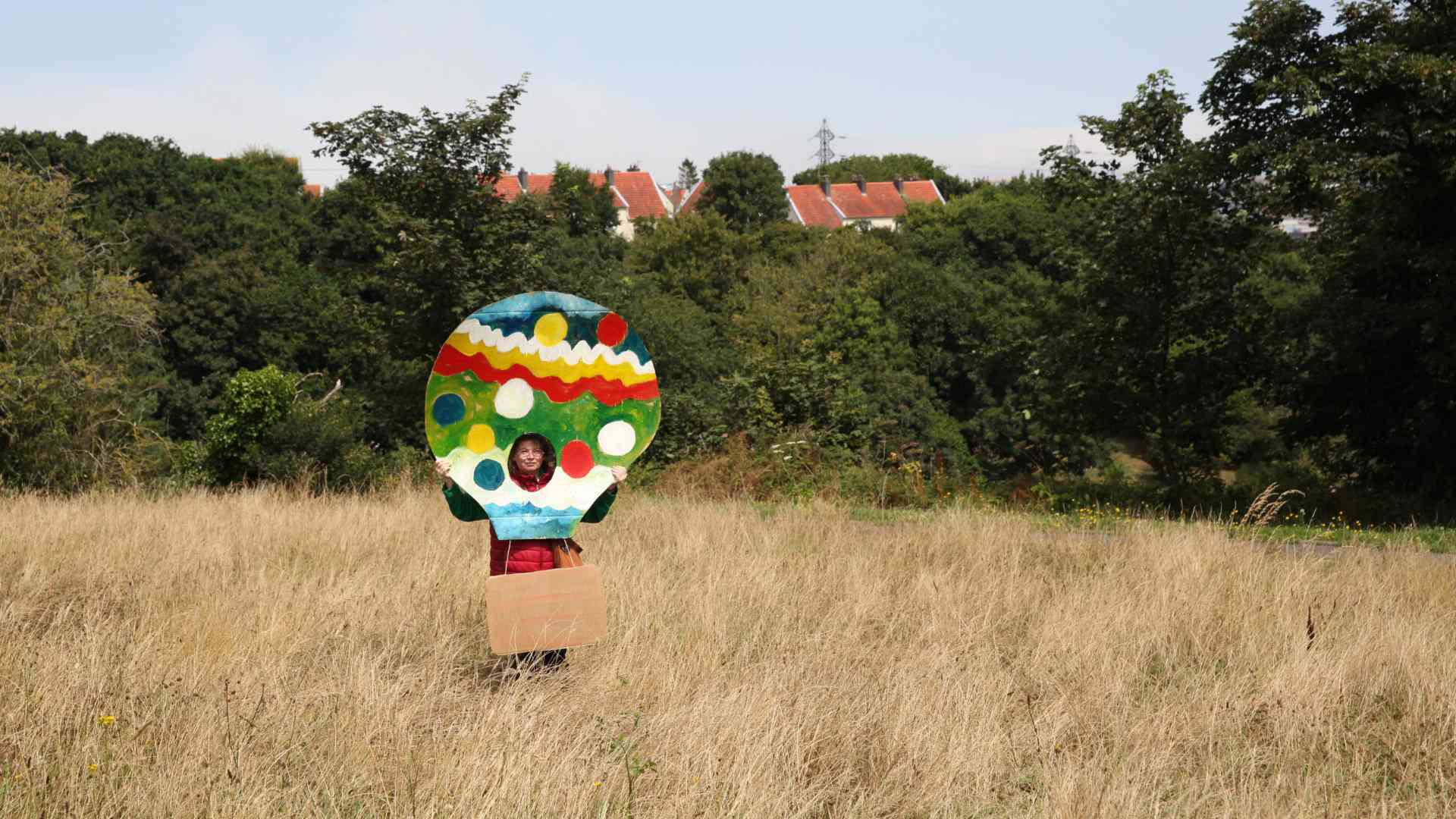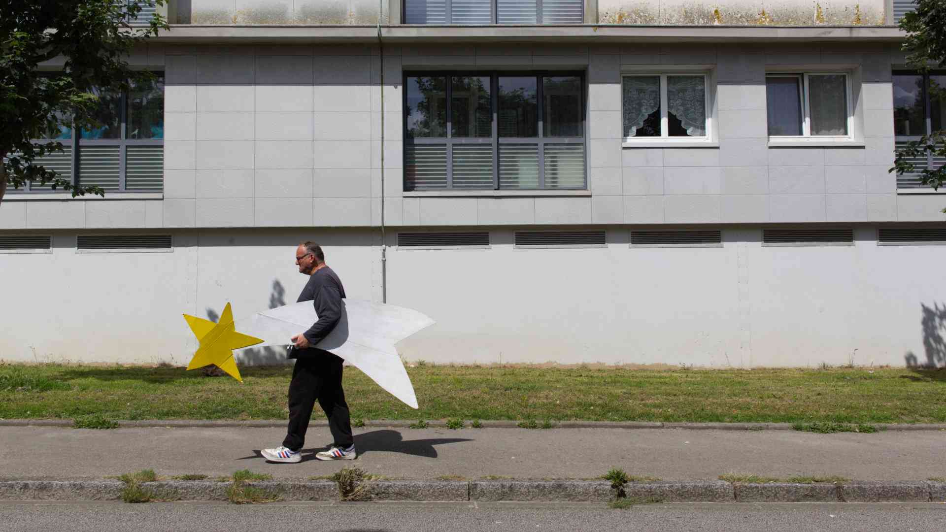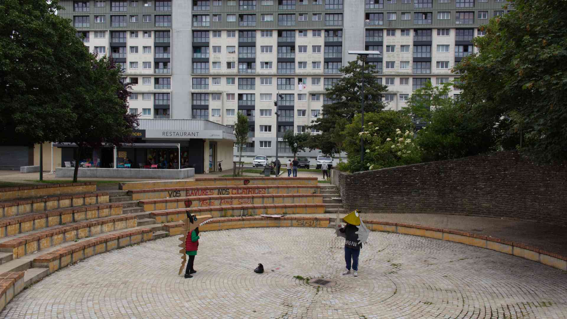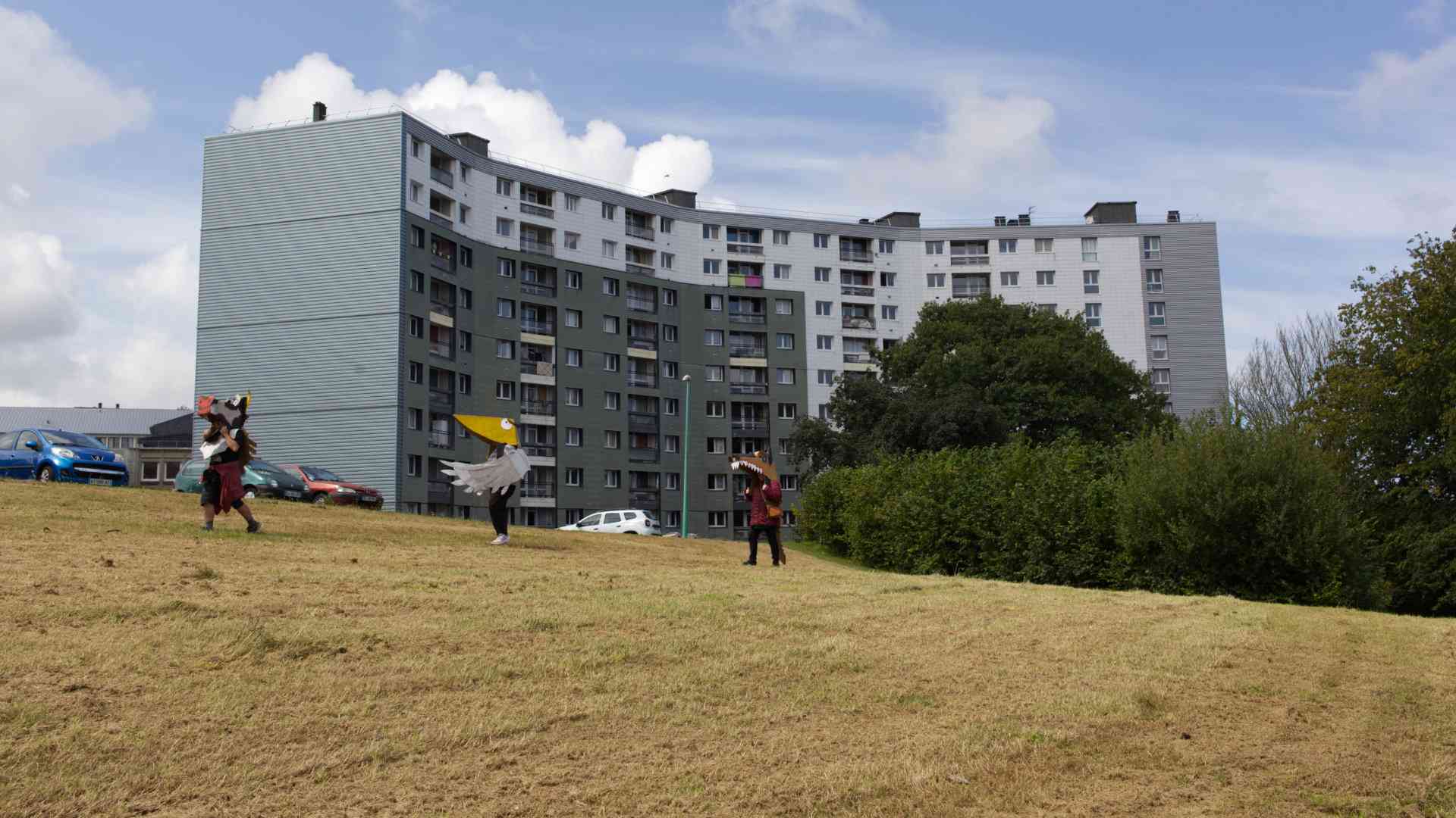 Uchronie autour d’une question simple : « Si vous étiez un dieu, quel serait-il ? » Un oiseau au bec jaune, une vache au nez rouge, un renard dinosaure, un nuage, une montgolfière, des bottes de sept lieues et Mr Patate. Des formes peintes en carton déambules dans les rues de la cité. Aux passants qu’ils rencontrent, la même question est posée et les réponses aussi spontanées que drôles, dérivent de la représentation divine à la critique sociale. Une étoile filante chemine à travers les rues annonciatrice de quelques épiphanies et toujours le même constat : C’est pas facile d’être un dieu. Ce film a été réalisé lors du programme de résidence : « Soudain l’été prochain », piloté par RN13BIS dans le cadre de « l’été culturel » de la DRAC Normandie à la Maison Olympe de Gouges à Cherbourg-en-Cotentin en Juillet 2025.